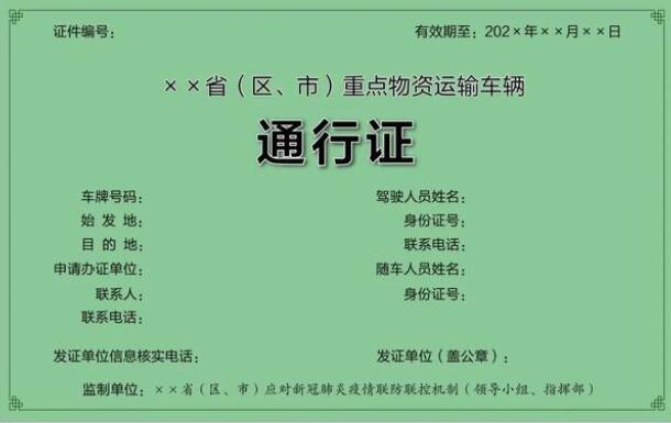 通知明确,《通行证》由省级联防联控机制统一监制,由省级相关部门核发。启用《通行证》地区的重点物资收发货单位,可根据物资类别,向所在地发展改革、工业和信息化、公安、交通运输、商务、农业农村等部门提出申请。运输起讫地均未建立《通行证》制度的,无需办理《通行证》。