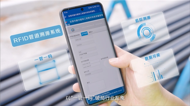 针对这一行业痼疾,日丰新材推出“RFID数字化管道溯源系统”,为每一条管道植入唯一的“电子身份证”,贯穿从原材料、生产制造、物流运输到现场施工、验收交付、运营维护的全流程,构建起覆盖管道全生命周期的数字化管理体系。